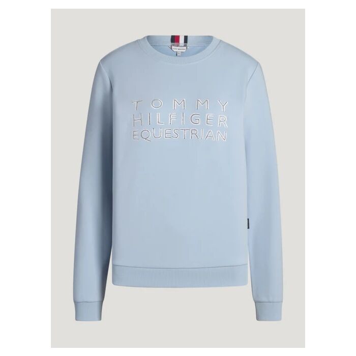 De Trui Tommy Hilfiger Belair Sweet Blue in maat L is een elegante stretch sweater met strass logo graphic, verkrijgbaar bij Equidrôme in Venlo en online.