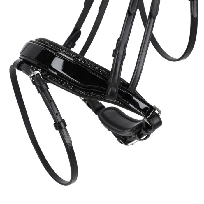 De QHP Skye Verwisselbare Neusriempadding Black/Silver maakt het eenvoudig om je Skye hoofdstel een stijlvolle, persoonlijke touch te geven. Dankzij de klittenbandsluiting vervang je de padding snel en combineer je deze met een bijpassende frontriem voor een luxe uitstraling.
