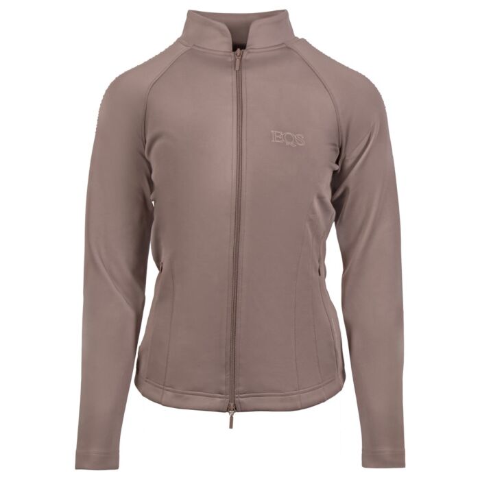Het vest Harrys Horse Classy in de kleur Coffee Quartz in de maat L is een elegant en vrouwelijk vest met een tweeweg ritssluiting een opstaande kraag fonkelende kristallen op de schouders twee praktische ritszakken en een subtiel EQS logo op de borst. Verkrijgbaar bij Equidrome in Venlo.