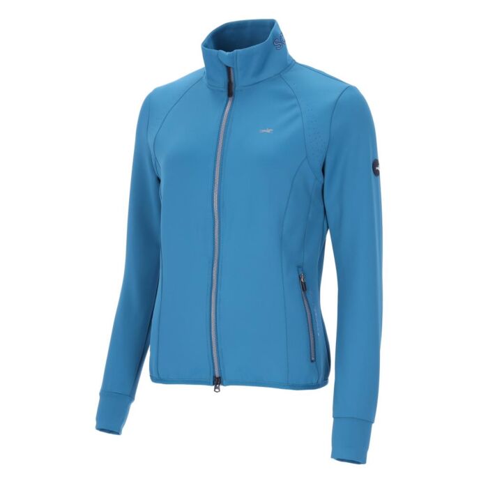 Het Vest Schockemöhle SPInes Style Colonial Blue in maat XS is een elegante dames jersey jas met een vrouwelijke pasvorm, ademende details en luxe strassaccenten voor zomers comfort.