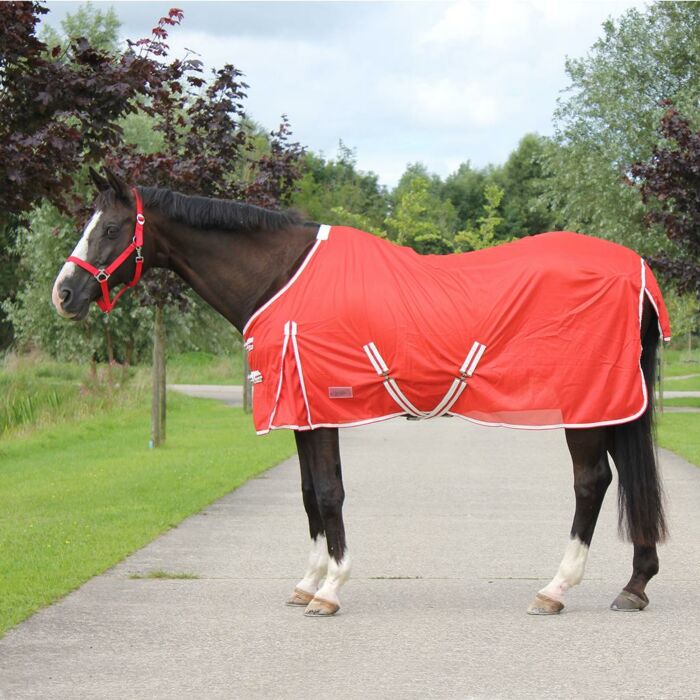 Mooi kleurrijke vliegendeken van QHP. Beschikbaar in felle kleuren passend bij vele andere felgekleurde producten. De deken is voorzien van dubbele gespsluitingen op de borst, kruissingels, een staartkoord en staartflap.