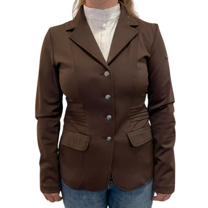 Het Montar MoKately wedstrijdjasje is de perfecte combinatie van elegantie en functionaliteit. Dit jasje is voorzien van zowel logoknopen als een discrete ritssluiting die subtiel is verborgen onder de knopen, wat zorgt voor een perfecte pasvorm en voorkomt dat het jasje verschuift tijdens je rit. Gemaakt van zacht softshell materiaal biedt het wedstrijdjasje uitzonderlijk comfort en flexibiliteit, waardoor je onbeperkte bewegingsvrijheid hebt. De verfijnde pintucks en sprankelende kristallen geven het jasje een exclusieve, opvallende uitstraling. Ontworpen om je prestaties én je stijl te versterken, is het Montar MoKately wedstrijdjasje de ideale keuze voor jouw competitieve succes. Nu verkrijgbaar in het bruin bij Ruitersport Equidrôme.