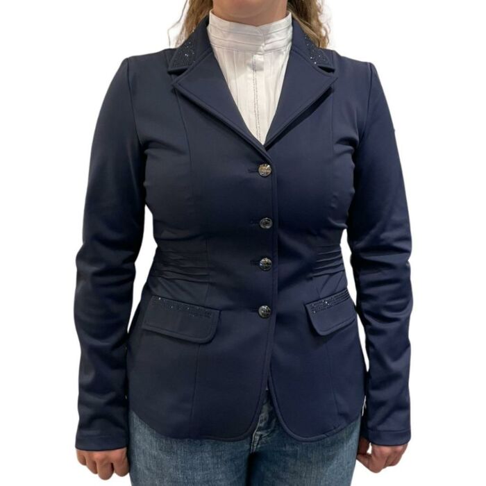 Het Montar MoKately wedstrijdjasje is de perfecte combinatie van elegantie en functionaliteit. Dit jasje is voorzien van zowel logoknopen als een discrete ritssluiting die subtiel is verborgen onder de knopen, wat zorgt voor een perfecte pasvorm en voorkomt dat het jasje verschuift tijdens je rit. Gemaakt van zacht softshell materiaal biedt het wedstrijdjasje uitzonderlijk comfort en flexibiliteit, waardoor je onbeperkte bewegingsvrijheid hebt. De verfijnde pintucks en sprankelende kristallen geven het jasje een exclusieve, opvallende uitstraling. Ontworpen om je prestaties én je stijl te versterken, is het Montar MoKately wedstrijdjasje de ideale keuze voor jouw competitieve succes. Nu verkrijgbaar in het blauw bij Ruitersport Equidrôme.