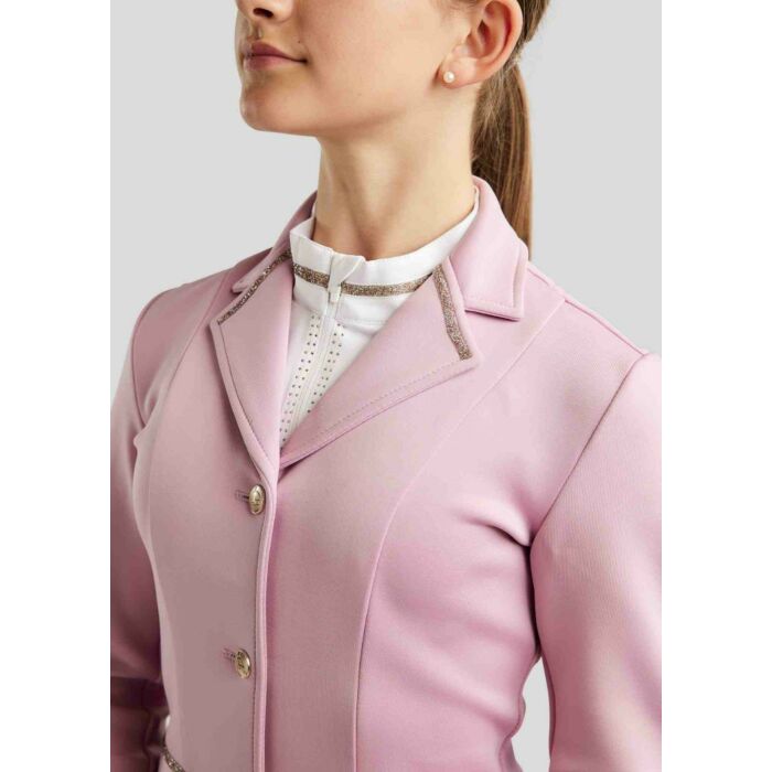 Elegant junior wedstrijdjasje van Montar in Candy Pink, maat 128, met een comfortabele pasvorm en luxe details voor jonge ruiters.
